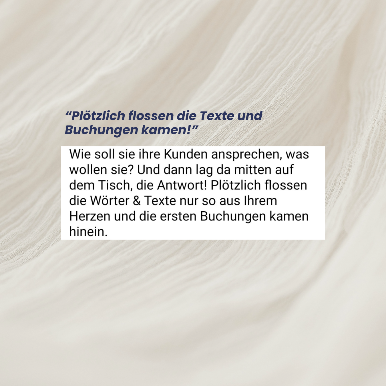 "Du jagst durchs halbe Internet, durch fremden Content und Kurse, um endlich deinen Weg für ein erfolgreiches Business zu finden. Du suchst nach der besten Außenwirkung als Brand, den cleversten Strategien, die beliebtesten Produktformate.